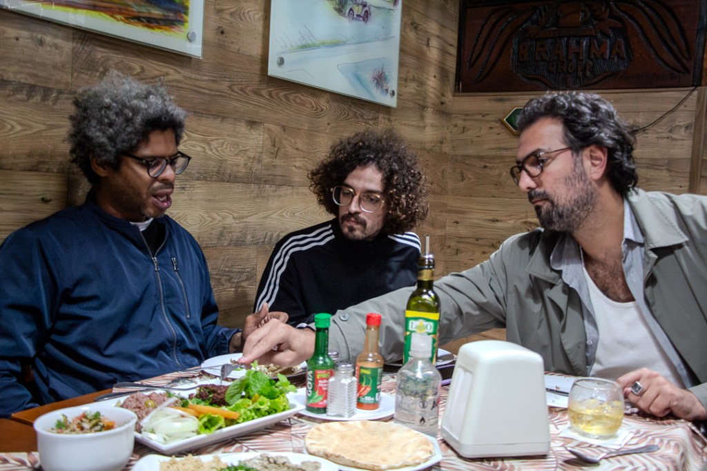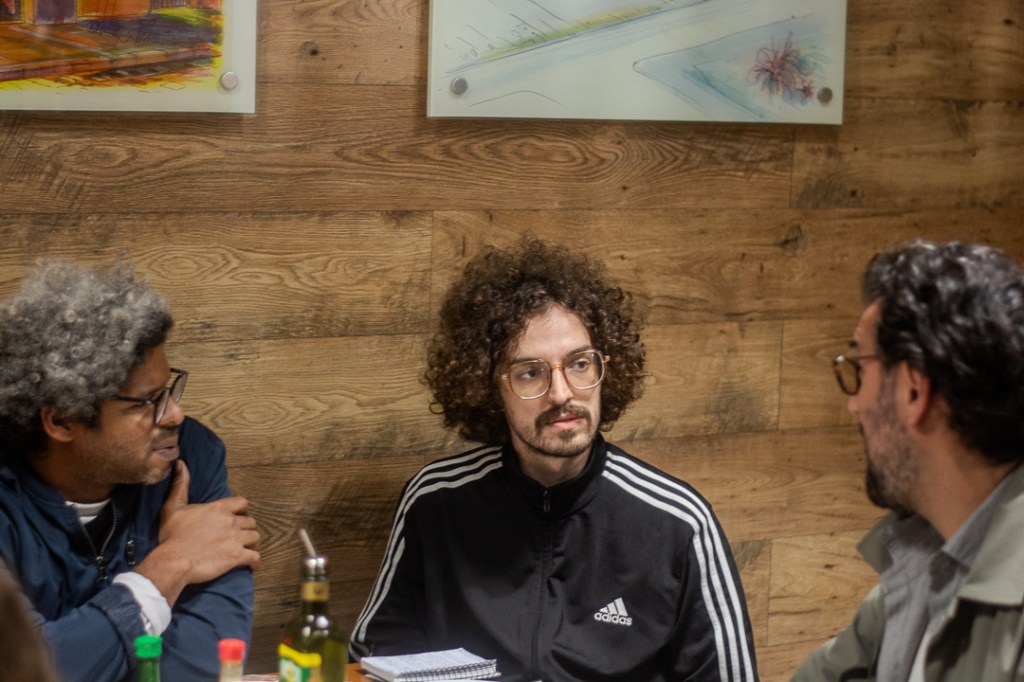 Ainda lá na lanchonete, antes da exibição do filme, Gregorio tinha me dito que as filmagens aconteceram antes mesmo de existir um roteiro, o que possibilitou tudo ser muito livre e desprogramado. Leo – já na mesa do Kibelândia, depois da exibição – explica que “todo acting no filme é casuístico, entendeu? Até porque a gente não tinha um plano de filmagem, a gente saia com a câmera.”