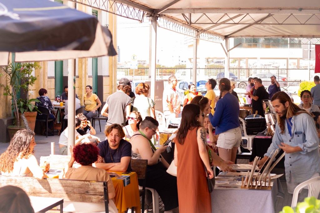 Conforme já mencionado no texto, esta foi uma das novidades do PORTUÁRIO desse ano – e uma novidade muito bem-vinda, deixando em Sarah a vontade de continuar e expandir a ideia. “Eu tô achando que a feira foi esse espaço muito legal, um espaço de troca, porque o espaço da exposição tá muito esvaziado. Então tenho pensado muito nisso, que a feira continua independente do projeto. Foi uma tentativa mais segura fazer ela primeiro dentro do PORTUÁRIO, mas talvez a feira ganhe vida própria e o PORTUÁRIO siga como esse espaço de formação, até pra ele ter mais liberdade na programação e no formato.”
