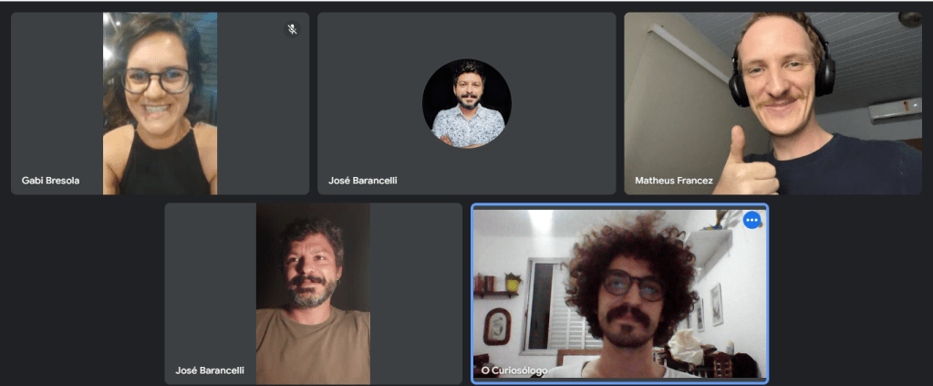 Estive, portanto, constantemente presente na história que agora conto. Mas, é claro, não estive sozinho. É por isso que convidei Gabi Bresola (produtora executiva e assistente de direção), José Barancelli (diretor) e Matheus Francez (de quem também é o argumento original – além de também ter feito captação de som direto e compor, gravar e produzir a trilha sonora original) para conversarmos sobre o nosso filme desde sua concepção, passando por toda produção, o lançamento (ocorrido em Joaçaba, no Oeste de Santa Catarina) e nossas percepções sobre seus assuntos. Abigail Ferrandin, que fez a direção de fotografia do curta, não pode participar da conversa – mas não deixei de incluí-la e de pedir o seu depoimento sobre o projeto posteriormente.
