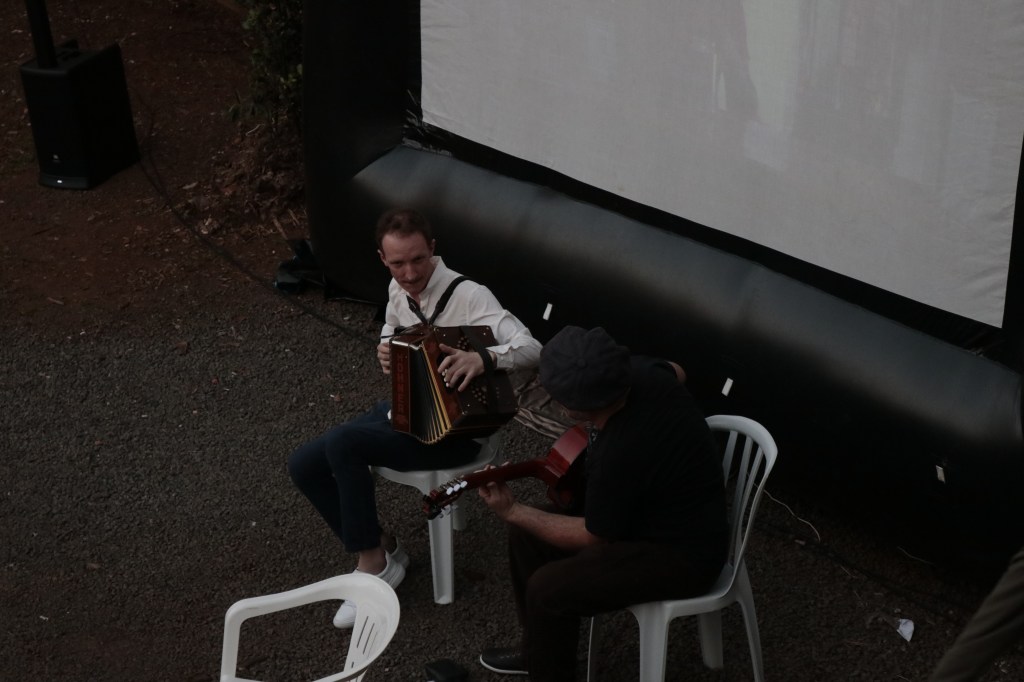Com cerca de 100 pessoas presentes, das mais variadas idades, Matheus Francez e Agnel Kufner – gaita e violão, se apresentaram para iniciar os protocolos do lançamento. Após a introdução de Gabi Bresola, o público assistiu entre atento e risonho aos 23 minutos do curta-metragem. Depois disso, entrevistados e membros da equipe fizeram falas a respeito do filme, das suas percepções, suas experiências, seus ofícios e suas posições: bodegueiro, comerciante (já que uns preferem jamais associar seu negócio ao termo “bodega”), profissional do audiovisual, músico, frequentador, boêmio. “A produção virou a bodega e a bodega se traduziu na produção”, como disse Gabi.