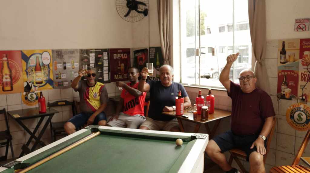 Atrás do olhar do filme, uma pessoa segura a câmera. E, essa pessoa sendo uma mulher – e em um filme que se passa em ambientes historicamente machistas – algum desconforto existe, mesmo em uma produção tão amigável. “Apesar de estar ali gravando, tá ali com amigos e tudo, foi duro perceber que esse não seja um lugar que eu seja bem-vinda por ser mulher e que eu me sinta confortável enquanto mulher sozinha. Por conhecer os bodegueiros agora e tal, sim. Mas pensando em outra perspectiva, talvez não seja um lugar muito fácil e acessível para mulheres mesmo. O que é triste, porque é um lugar cheio de história, de afeto também. E é um lugar pra descontrair, pra descansar, um lugar de lazer. Mas eu acho que ele não tem essa mesma função para uma mulher.”
